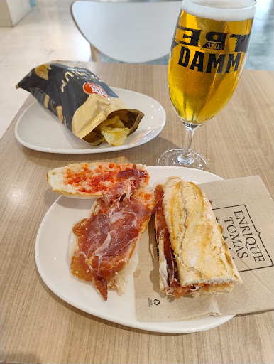 Read moreHoy he pasado por el Bar Enrique Tomás en el Ànec Blau y la verdad es que ha sido una experiencia muy agradable. El sitio es pequeñito pero muy acogedor, perfecto para hacer una paradita antes de entrar al Mercadona a hacer la compra semanal. El servicio ha sido de diez. Los camareros son súper amables y siempre con una sonrisa. Pedí un café y me lo trajeron enseguida, y estaba riquísimo, justo lo que necesitaba para recargar pilas. Aunque no pedí nada para comer, vi que tienen una gran variedad de embutidos y bocadillos que tenían una pinta espectacular. Así que, si buscas algo más que un café, este es tu sitio. El ambiente es tranquilo y relajado, ideal para desconectar un rato. A pesar de ser un local pequeño, está muy bien aprovechado y es muy cómodo. La decoración es moderna y agradable, lo que le da un toque especial. En resumen, el Bar Enrique Tomás es una opción genial para tomar un café y disfrutar de un buen servicio en un entorno agradable. Sin duda, volveré a pasar por allí en mis próximas compras en...