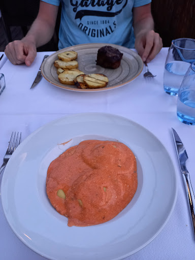 The waitress was very friendly and knew English well (which was a nice surprise) so we even talked a bit about Argentina, she gave us recommendations etc. We even got extra bread for free for our starter. The service was really 5/5. The food was super good, we've got the grilled cheese for starter, and then my boyfriend ordered sirloin steak and I got pasta. Very good food! Recommended. It was even way cheaper than we expected because the restaurant looks very fancy. It could use a little better location so 4/5 for atmosphere because I have to keep the 1 star reserved for restaurants with very...