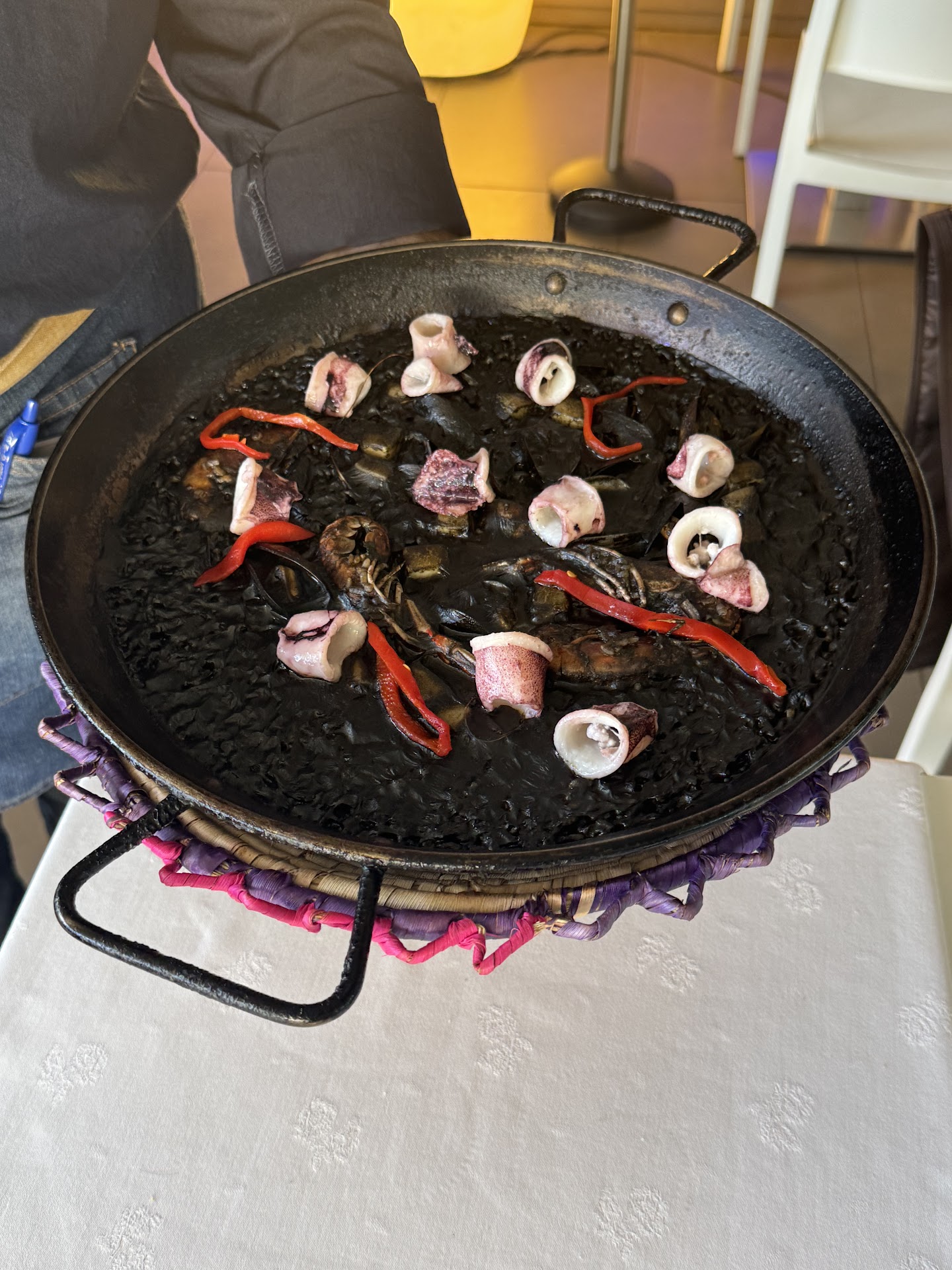 Pero es que además en la mesa de al lado una pareja de 2 señoras que deben ser clientas asiduas puesto que se les autoriza a traer de fuera 4 cervezas Voll-Damn de Cristal 33cl puestas encima de la mesa que se han traído de casa (así nos lo confirman cuando pedimos nosotros una Voll-Damn). Otro hecho bastante desafortunado es que cuando finalmente llega la paella y pregunto si puedo hacer una foto antes de servirla las señoras de la mesa de al lado con sus Voll-Damn piden ver nuestra Paella, la cual desaparece de nuestra vista para presentársela a ellas poniéndosela delante de sus narices.