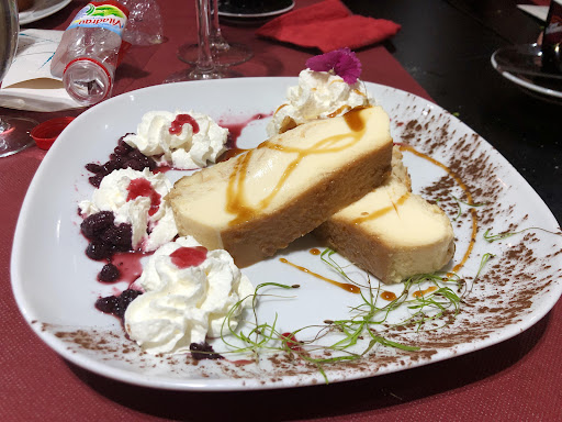 Zacznę od tego, że jedliśmy same tapas z powodu zamkniętej kuchni, więc nie wiem jak z innymi daniami. Zamówiliśmy nuggetsy, zapiekankę z ziemniaków, kalmary. Nuggetsy były twarde i nie smakowały za bardzo jak normalne, typowe nuggetsy, ale jednak zjadliwe. Zapiekanka była dosyć smaczna, kalmary również, ale dosyć sporym minusem był brak informacji o sposobie przyrządzenia. Myśleliśmy że przyjdą grillowane a przyszły smażone w panierce. Kelner nie mówił zbyt dobrze po angielsku i zamiast rachunku chciał nam przynieść wino. Spędziliśmy tam ok 2 h, gdyż na każde kolejne danie czekaliśmy mniej więcej 15-20 min, a przez 3/4 czasu byliśmy zupełnie sami. Zapłaciliśmy za to aż 60 euro, czyli w przeliczeniu na złotówki ok 250 zł. Na sam koniec poszliśmy do toalety, a w niej unosił się silny zapach chloru. Szczypał w oczy i usta i odczuwaliśmy straszny dyskomfort przez długi...