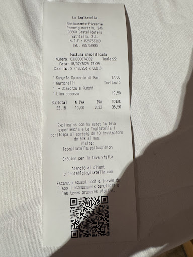 Muy desagradable, el peor Tagliatella que he ido. Hemos llegado sobre las 22.15, 3 personas. Nada más entrar te encuentras al pizzero que ni si quiera te dice ni buenas noches, ni nada, y eso que nosotros lo hemos saludado. Hemos estado 15mn esperando a que llegase alguien, a llegado un hombre con gafas y sin uniforme, todo a punta a que era el encargado, nos dice que nos esperemos un momento en la puerta que tiene que recoger mesas de sala. Solo habían 3 mesas ocupadas. A los 10mn sale una camarera y nos dice que cuántos éramos le decimos que 3 y que su compañero ya nos estaba atendiendo y de golpe a salido el muy déspota y nos dice “os he dicho que esperéis fuera que enseguida pasáis”. Nos sienta en la mesa, viene la compañera a pedirnos nota, le decimos la bebida, los entrantes y la comida. Nos traen la bebida sin las aceitunas cosa que en cualquier Tagliatella te ponen para ir picando, quitan la calefacción y ponen el aire acondicionado hacía muchísimo frío en la terraza. Nos trae unos tortellini friti para picar, al rato la ensalada y se le olvida el pan, habiéndoselo pedido lo primero, le comentamos que no tenemos el pan y nos dice “ ya lo sé eh ya está saliendo” cosa que en cualquier Tagliatella te lo ponen lo primero pero en fin nos quedamos callados, nos traen los 2 lomo consensa y para nuestra sorpresa estaban FRÍOS NO LO SIGUIENTE, se lo comentamos a la chica y nos dice que nos esperemos que viene su compañero, viene el señor y sin mediar palabra se lleva los 2 platos, al traerlos no pide ni una disculpa nada deja los platos y se van, volvían a estar FRÍOS pero esta vez el lomo estaba quemados, no hemos dicho nada porque sinceramente con ir una vez y no más ,porque no vale la pena el pésimo servicio quedáis, no nos habéis dado ni la carta de postres ni si quiera nos habéis preguntado si necesitábamos algo más. El señor de gafas es un déspota y si no le gusta ser encargado o trabajar cara el público búsquese otro trabajo y la camarera antipática y maleducada. Miran a los clientes por encima del hombro. Se sabe que es una franquicia pero 3 personas son 94,50€ y no es el precio es lo sin vergüenzas que habéis sido y lo mal educados, nos habéis olvidado en el comedor porque éramos la última mesa que quedaba, el encargado no, pero la persona que a franquiciado ese local debería de mirar al encargado que tiene y la camarera. Porque así pierde...
