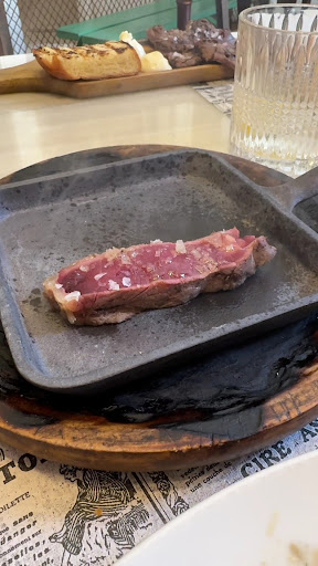 Read moreDecidimos ir a Castellón desde Cullera y escogimos este local para comer por recomendación. Sugiero que hagan reserva. La decoración clásica abstracta, donde hay una mezcla de distintas decoraciones pero que todas juntas tienen una harmonía perfecta. Empezamos con el tartar de salmón ahumado con aguacate y mango que estaba simplemente espectacular, apenas tienen que limpiar mejor el salmón porque me encontré con varias espinas. Acompañando el tartar pedimos unas bravas de boniato que han sido plato estrella, una mezcla de dulce y salado, donde la forma como las preparan, vas a tener ganas de pedirlo nuevamente. Como individuales pedimos el pintxo de txuleton a la piedra y el pintxo de lomo con queso brie. El primero tienes una carne de alta calidad, con sabor, se nota la madurez de la carne, que la terminas de cocinar tú mismo a tu gusto, apenas te la traen sellada en pequeños cortes, luego el segundo una carne super tierna que se te deshace en la boca y un queso brie de alto nivel. Para cerrar pedimos la crema de mango con helado, no soy de dulces pero este me ha ganado muy fácilmente y un tiramisú de chocolate blanco a la italiana, con una presentación muy interesante, una textura muy cremosa y agradable. En todo lo que pedimos se nota la calidad de los productos utilizados para elaborar cada plato. El concepto es alta cocina presentada de forma minimalista a través de pintxos. No se confundan, no son los pintxos que les sirven en el bar del barrio con una cerveza. Para terminar el café está simplemente buenísimo !! Entre todo les recomiendo este local y seguro que la próxima visita a Castellón...