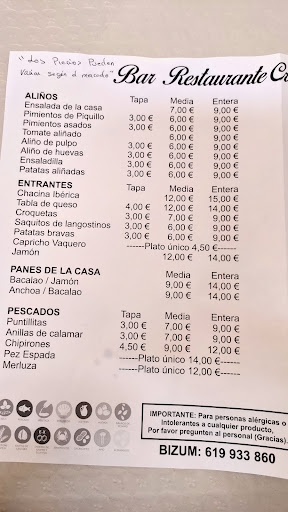 Read moreLo visitamos la 1° vez al disputar un partido en el campo que está próximo. Nos gustó bastante , y ayer de paso por el pueblo, volvimos a visitarlo . Buen servicio , carta con tapas , medias raciones y raciones . Postres caseros , los platos vienen con bastante cantidad , lo que en otros bares sería media o entera , en bar. CRisto de los vaqueros , son tapa o media . Además precios que como digo, en otros bares sería el doble . Refresco en lata , cuando ya en otro sitio, te ponen una mini botellita , y bastante mas cara . Por 2,50 , me pusieron arroz con leche , que si te pilla un poco lleno , no lo terminas . Así que es visita obligada , cada vez que pase por...