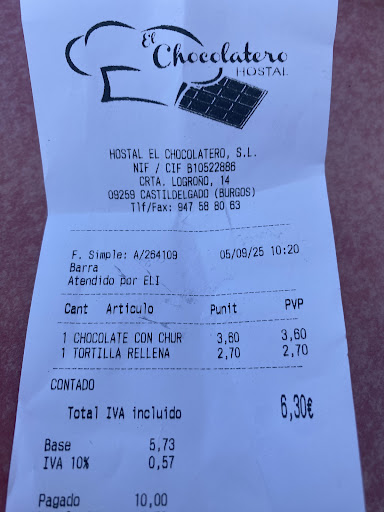 Read moreMuy señores míos... Tienen que poner ustedes los precios en la carta, no es lógico que todos los precios se encuentren tachados a mano, así como tampoco es lógico que al intentar pedir una ración en barra no se ponga porque según ustedes no la sirven por encontrarse el comedor abierto y ofrecen solo bocadillos. Entiendo que cada establecimiento tiene sus normas y precios... Pero yo como cliente tengo derecho a conocer los precios tanto de la barra como del comedor. Me parece de muy mal gusto tener que preguntar el precio de todo excepto del menú que es el único que consta.(18.00€ menú fin de semana) En cualquier caso no entiendo que un plato combinado cueste más que un menú diario(13.50€) concretamente plato de pechugas de pollo 12.50€ a parte por supuesto bebida etc.... Si destacare la buena atención recibida por una de sus camareras, la cual entendió perfectamente...