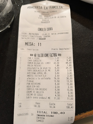 Read moreAlgo extraño porque las buenas opiniones abundan pero en mi caso suspenden abrumadoramente salvo en los postres. La ensaladilla de melva y la de atún, insípidas ambas. Y ahí lo dejo. El pan asturiano caro y una mezcla extraña de sabores inconexos. Las almejas a la sanluqueña un despropósito culinario porque el sabor principal de las almejas no aparecen por ningún sitio sino que las anulaba una salsa que en todo caso sería para carnes por lo potente del sabor. La fideuá otro plato sin sentido por muchos trozos de calamar o pescado que tenía. Más parecía una sopa de pescado por la cantidad de caldo que tenía que si al menos estuviera sabroso, podría pasar. Pésima cocina. Los postres en especial el tocino de cielo, estaban buenos. Decepción total y servicio aceptable aunque todavía espero por la sal que pedí dos veces para las insulsas ensaladillas. Teníamos una mesa al fondo del salón que con la reverberancia de tanta gente hablando, era un sufrimiento y de ahí que puntúe el ambiente con el mínimo. Se podrían colocar elementos en el techo para romper esa molesta situación. No volveré porque hay muchas otras opciones como...