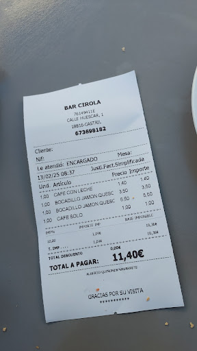 Read moreDespués de ver tanta reseña buena de éste bar, ha sido una gran decepción. Lo único bueno que ha tenido es el servicio por el camarero, por lo demás nefasto. Después de que me surgiera un problemilla con el coche y llevar todo el día fuera de mi casa con mis niños pequeños. Acudí al bar un poco tarde (15:40h) para poder comer un plato caliente y para mí sorpresa me dicen que la cocina está cerrada. Que a las 4 cerraban cocina "supuestamente". Y había una mesa al lado nuestra que habían llegado 5 minutos antes y le pusieron menú y a nosotros nos dijeron que estaba todo limpio y cerrado, solo nos podían ofrecer bocadillos fríos. Y me han cobrado 20€ por dos cervezas, un refresco y dos bocadillos de jamón. Encima de todo nos lo esperábamos más barato después de la decepción. No volveré a acudir a éste establecimiento ya que yo trabajo en el sector de la hostelería como camarera y cocinera, y nunca he dicho que no a un cliente y más habiendo tendido un problema y...