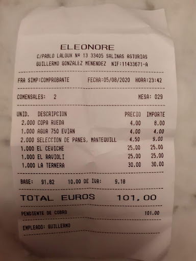 PD: la factura es de 101€ ya que le pedimos explicaciones y nos decidieron quitar 1 unidad de los raviolis que siendo realistas debería de haber sido 1 unidad de selección de pan (eran 6 medias rebanadas pequeñas con aceite, sal y 3 tipos de mantequilla) y 1/2 Ceviche , el resto aunque eran escasos los platos, se puede considerar correcto, aunque muy caro.
