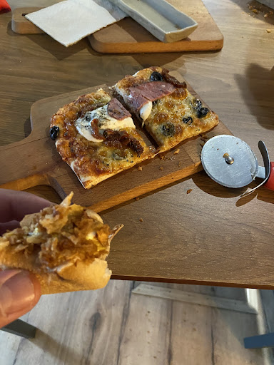 Uno de los bares de pizza más ricos de Castro caracterizado por su variedad de ingredientes y su novedad en la combinación de los mismos. Se pide por porciones que te calientan en el momento. Puede parecer una desventaja el recalentar pero lo cierto es que como hay mucho "tráfico" reponen rápido y no comes algo que lleva mucho tiempo en la barra. La ventaja, que en dos minutos estás comiendo y los sabores son realmente buenos. El precio de la porción es de 2.80€. En bar se encuentra en medio del casco y de la zona de pintxos y cuenta con un pequeña terracita con banquetas y mesas altas. Dentro hay también media docena de mesas pero en hora punta hay mucho ruido. Las pizzas...