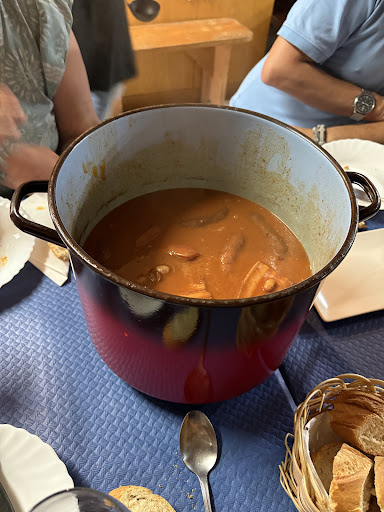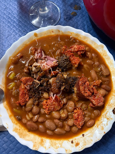 Read moreLugar de los que ya no quedan. Nos pusieron de aperitivo un choricito y unos pimientos confitados bastante sabrosos, antes de traernos el plato principal. Pedimos -por encargo- unas alubias que estaban impresionantes. Te dejan la olla en la mesa y puedes tomar cuanto quieras, además del sacramento al lado para ponerte a tu antojo.