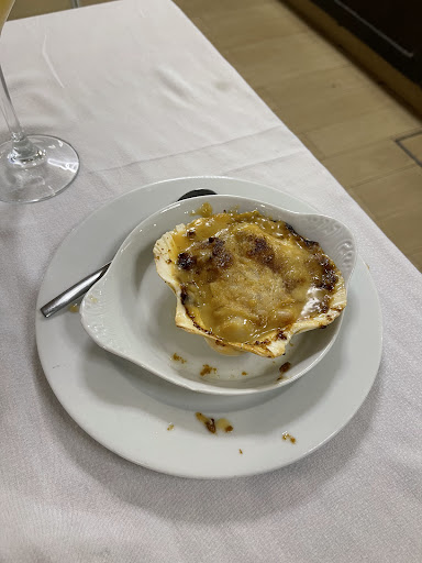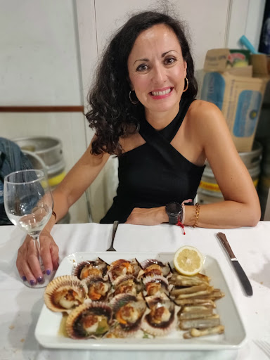 Nice location on the harbor. I went here because of a recommendation and it’s good rating. While they have a full menu, your are recommended to take a look at what’s available from the display case. I chose one Vieira rellena in large shell (scallop pieces baked with a sauce), great; two little zamboriñas (variegated scallop) excellent. I also selected a pre cooked spiced bacalao (cod) which looked good but when served in a plateful of briney watery liquid it didn’t taste great. I did mention that I’d like some vegetables and a salpicón was suggested but it too wasn’t great and I couldn’t finish it. I’m sure had I chosen a fresh fish and/or say green beans or peppers for vegetables I would have...