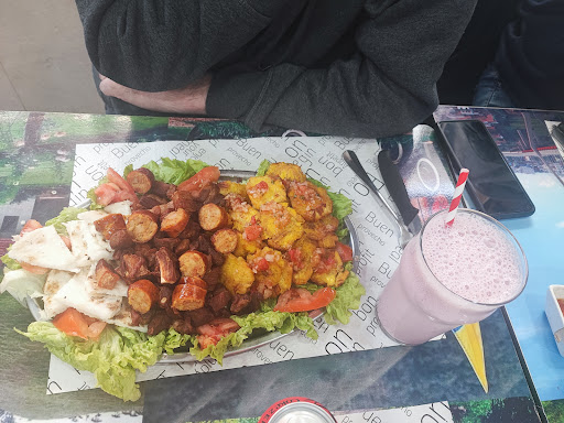 Read moreEs un tipico bar latino, para tomarse una cerveza o un jugo, pero para almorzar no esta muy bien, tienen en la carta una "bandeja paisa" por 15€, y ademas de ser un plato pequeño para lo que habitualmente es, no lleva ni aguacate, ni arepa, y el chorizo lo han reemplazado por algo que parece una salchicha ranchera, el arroz y los frijoles parecia que lo habian hecho dias atras. Ademas pedí una empanada de carne y parecia mas una empanada de papa con 3...