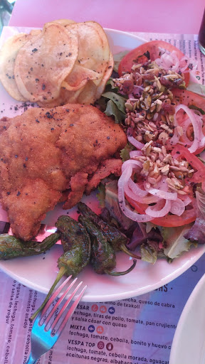 Read moreFuimos a comer 3 personas y pasamos al interior del comedor (piso de arriba, que estaba prácticamebte vacio). Pedimos lo mismo del menú del dia: 3 ensaladas mixtas y 3 merluzas rebozadas. La lechuga de la ensalada tenía un aspecto mustio, con los bordes marrones. Debe ser que era la última de la bolsa, porque luego nos trajeron la merluza (que era un filete de merluza de los de bolsa de congelados) y la guarnición era otra vez ensalada, aunque esta lechuga si que estaba bien. De postre pedimos 2 mousse de limón y 1 tiramisú. Sólo pudimos probarlos porque no nos gustaron: el tiramisú estaba reseco y la mousse muy agria. Aparte, el servicio extremadamente lento y el mobiliario (mesa y sillas) sucios y llenos de grasa. El personal muy amable, eso sí, y la terraza de la calle estaba llena. Pero...
