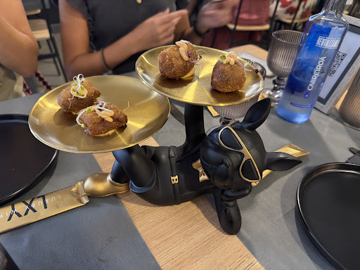 Read moreDesde que entramos la experiencia fue increíble. Pedimos unas croquetas que no solo estaban deliciosas, sino que además llegaron presentadas en un plato con forma de bulldog francés, un detalle original que marcó la diferencia. El chuletón madurado fue simplemente perfecto: jugoso, en su punto y con un sabor espectacular. Las costillas de cerdo, tiernas y sabrosas, se deshacían en la boca.