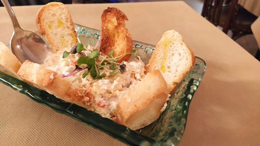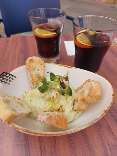 Read moreMenú recomendable, se sale de los platos clásicos de menú, a un precio asequible. Estuvimos entre semana, a mediodía Disponen de menú y de carta. Buena eleboracion de la comida, y cuidada presentación. Pedimos fuera de menú media tapa de ajoarriero (muy suave, en su punto de sal) y un par de vermuts. El menú es bastante extenso, tanto en entrantes como plato principal. Varios platos del menú llevan un suplemento de precio, no es excesivo, pero hacen que el menú se pueda encarecer un par de euros más. Hay opción a platos sin suplemento. El postre entra pero es opcional con el café. El precio del menú son 12'50€, incluye pan y bebida. Las cantidades son correctas, y acordes de calidad. Si pides agua, es osmotizada, pero se puede pedir envasada. El servicio correcto y amable. Comimos en la terraza, pues llevamos un perrito, se está muy bien es amplia y la calle es tranquila, sólo un pero ...la extracción de humos hacia la terraza, y hay momentos en que el olor se hace pesado. No obstante, dispone de comedor interior, que parece bastante grande. Vaya, que mos...