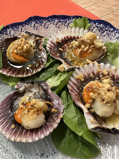 To start we shared scallops and garlic prawns.