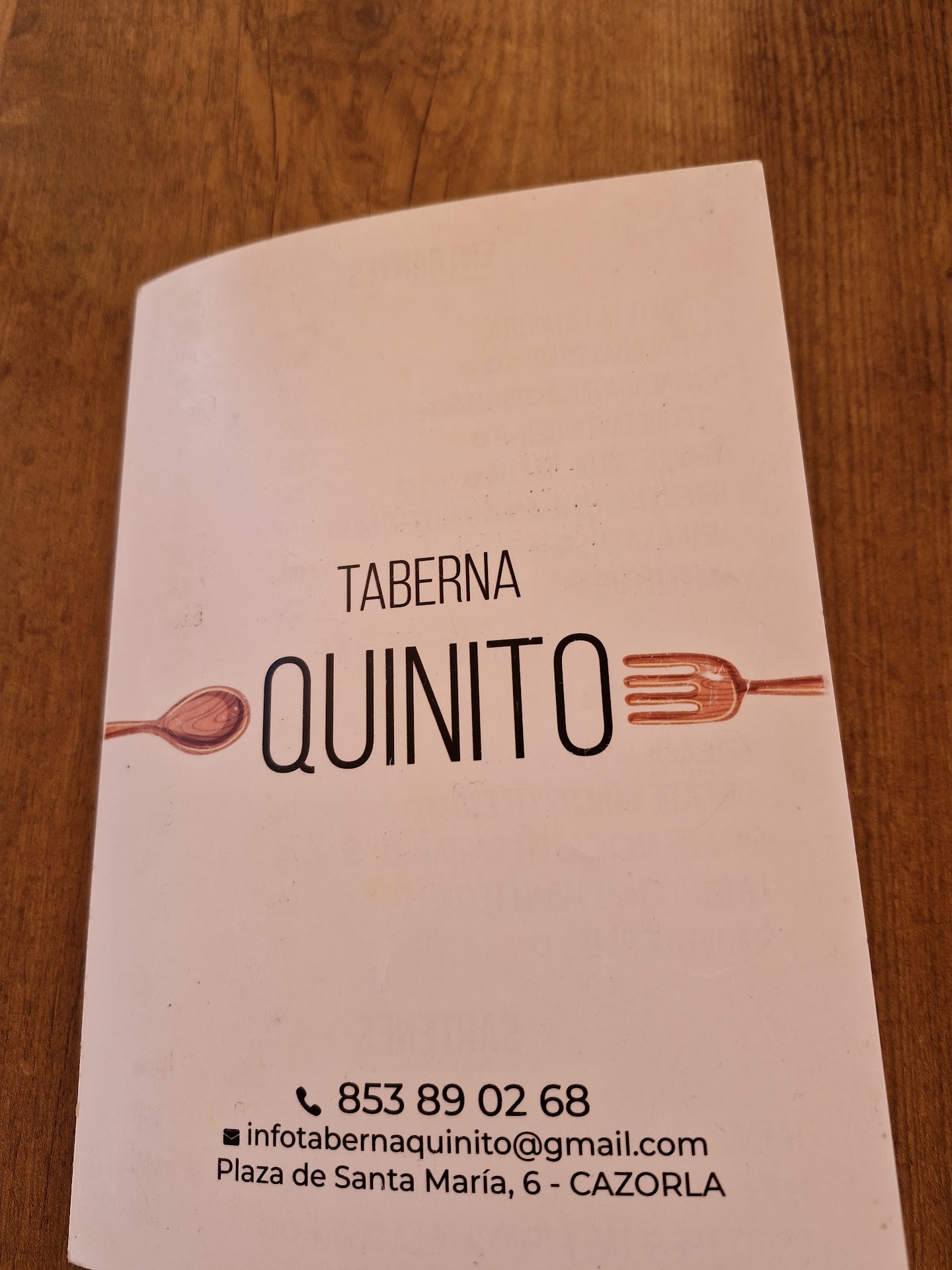 Read moreDedicimos reservar para evitar esperar,ya que era la fiesta de la patrona de Cazorla Ntra Señora de la Cabeza,y a nuestra llegada aun nos toco esperar un poco,nos tomamos el vermuth en la barra mientras esperabamos,ya que queriamos comer en la terraza exterior,y con vistas a la Plza de Santa Maria de Gracia. Queriamos probar el flamenquin de ternera (Rabo de Toro) y nos encanto,esta riquisimo y totalmente recomendable,al igual que el torrezno,esta muy crujiente y riquisimo tambien,ambos platos los tienen en sugerencias de la casa. Los postres no tienen mucha variedad,y cafe no tienen,te recomiendan tomartelo en un rte.que hay al lado,que es un turco Donner Kebap,que ademas de comida,tiene heladeria,cocktail's,y muchas variedades de cafes,y infusiones. El servicio fue bastante rapido,amabilidad por parte de l@s camarer@s,lo que no nos gusto mucho es tener que reclamar el aperitivo en varias ocasiones,al tener fama la localidad de Cazorla,de tapear muy bien con cada consumicion. Totalmente...