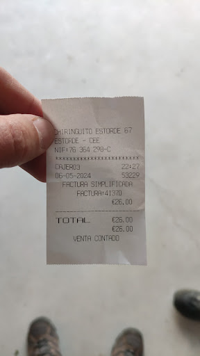Servicio: 5 Al entrar, vimos que la familia estaba comiendo una gran fuente de carne con patatas bien crujientes, que se veían muy sabrosas, y todos parecían disfrutar. Nos supo mal interrumpir, pero el ambiente era cercano. Nos atendieron muy bien, especialmente el chico de la barra, que estuvo pendiente de nosotros en todo momento. Sin embargo, el dueño nos trató como turistas, y nos sentimos algo decepcionados por lo que nos sirvieron y lo que nos cobraron. Solo estábamos nosotros comiendo e hizo el día con nosotros… Había una gran diferencia de precio entre los calamares (30 €) y otros platos como la ensalada (6 €) o la tortilla (12 € por dos raciones a 6 € cada una). La tortilla estaba buenísima, y la ensalada, muy fresca.