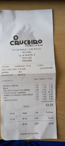 Read moreUn lugar 100% recomendable. Fuimos para cenar y a pesar de que la cocina empezaba a las 20:30h pudimos sentarnos y tomar unas bebidas mientras fuimos seleccionando la comanda. El camarero que nos atendió estuvo muy pendiente de nuestras preguntas y peticiones incluso antes de empezar el servicio de cenas. Teníamos unas vistas espectaculares donde, a través de unos enormes ventanales, se podía visualizar la montaña en todo su esplendor. Pedimos unos pimientos del padrón, plato típico de la zona, que estaban riquísimos. Una ensalada de la casa o cruceiro completísima y muy variada y un churrasco mixto acompañado por unas patatas fritas y un chorizo criollo, exquisito todo. Para terminar, de postre pedimos una tarta de queso que estaba riquísima. El servicio profesional y muy amable, el ambiente muy acogedor, la comida exquisita y las vistas inmejorables. Diez de diez. El precio bastante bien, 40€ dos personas con una botella de albariño y una...
