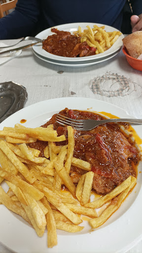 Read moreHorrible !! De primero unos calamares a la romana mediocres y mejillones a la vinagreta q brillaba por su ausencia!!6 mejillones en su concha con 2 trocitos de pimiento morrón y cebolla picada por encima (2 trocitos literalmente ) el segundo plato nefasto algo tan simple como unas patatas fritas q lleguen frías a la mesa a la una de la tarde.por no hablar del churrasco q usaron para limpiar los residuos de la parrilla quemado por fuera y vivo por dentro..el sabor que te dejaba en la boca es indescriptible 🤮...no lo recomiendo para nada!!un montón de personal dentro de la cocina y no saber hacer...
