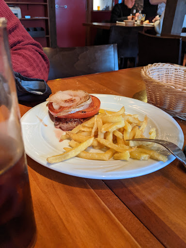 Mi chico pidió como extra una hamburguesa pequeña, que muy amablemente el camarero nos advirtió que venía sin pan. Lo que nos sorprendió es que era una mini hamburguesa con sólo cebolla y tomate acompañado de patatas por 6,50 € !! Un robo vamos.