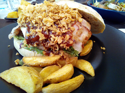 Read moreHacía tiempo que no visitaba el local. Esta vez en turno de comida. A esta hora el local está mucho menos concurrido que por la noche. Quizás este es el motivo por el cual a diferencia de la última visita, el local no olía tanto comida. El servicio es bueno y el local correcto Han variado ligeramente la carta ya que antes diría que podías elegir el tamaño de la hamburguesa, ahora han optado por tener solo una medida. La hamburguesa muy bien presentada, con muchas opciones y complementos, de esas que entran por la vista tan solo verla. Pero en mi opinión lo que mas valoro y lo que creo que es mas importante es la carne y eso es precisamente lo que menos me ha gustado. No me gusta que al coger el panecillo la hanburguesa desprenda tal cantidad de agua y aceite que hace que el plato quede practicamente inundado. Cada hamburguesa viene sin patatas, éstas las has de pedir como extra con lo que facilmente te vas a 10€ por el plato. En resumen y en mi opinión, buen servicio y local,...
