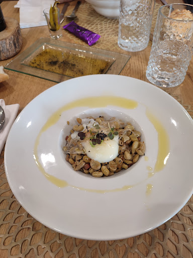 Read moreEs un lugar por el que pasamos habitualmente de viaje pero siempre habíamos parado a media mañana a tomar alguna tapa y bebida y en este sentido bien. El 05/10/25 pasamos sobre las 13:50 y decidimos parar a comer. El menu de fin de semana son 38€ y por ese precio tienes un "entrante" (degustación de aceite con sal negra), un primero a elegir, segundo a elegir, postre y agua de grifo filtrada, además te ponen un trozo de pan al principio para untar en el aceite y si pides mas luego te lo cobran. La atención y el servicio nos parecieron impecables: muy profesionales y es algo que se agradece hoy en día. Parte de ese buen servicio fué la rapidez gracias a la abundancia de personal atendiendo. Dicho esto pasamos al tema comida: de primero elegimos unas Alubias pochas a la Riojana con piparras y un Wok de habitas baby con jamón ibérico, huevos escalfado y papada ibérica: las Alubias estaban mas bien sosas, sin "sustancia", ni rastro de chorizo ni carne y, sinceramente, parecian de 4 generación (o incluso de bote) pero de calidad jusita, eso si: iban con 2 piparras, si 2 muy bien presentadas en un vasito con sal negra. Respecto al Wok de Habitas, bueno: cantidad muy justa para gente con apetito, solo un huevo y ni rastro de jamón o papada, igualmente "sin sustancia" e incluso se percibía la acidez del producto en conserva. Eso si, la presentación muy bien emplatados. Pasemos a los segundos: Jabali de montería en salsa de setas y hongos: igualmente "soso" para lo que es un guiso de este tipo, mucho caldo y las setas y hongos testimoniales. Si tuviese que apostar apostaría por comida precocinada igualmente o por un cocinero realmente muy "justito". El otro segundo fué chuleta de Vaca madurada a la parrilla de 0,300 kg aproximadamente (hace un año por lo que he visto era 0,350 kg y el menu era 32€, no 38€), que pedimos "sangrante": esto significa vuelta y vuelta para hacer costra y vale, pero por uno de los lados se les habia ido la mano y estaba pasada, además apostaría que no pesaba mas de 200gr en la mesa. De postres pedimos un Irlandes y una Torrija y aqui tengo que decir que sin quejas, muy ricos. En resumen: si valoras el servicio y ambiente por encima de todo puede ser tu restaurante. Si valoras la comida, especialmente la relación calidad-precio, te recomiendo buscar otro sitio los fines de semana al menos. Vamos, que pagas el servicio. 38€ por lo que ofrecen al comer es una burrada, y lo digo desde el punto de vista de alguien que...