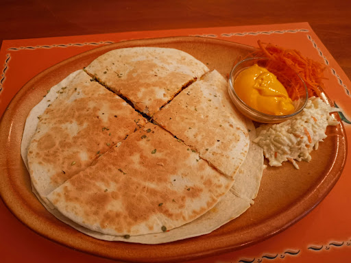 De mexicana no tiene más que la apariencia. Nachos malísimos, yo diría que son los de la marca blanca del Lidl. Ensalada con exceso de salsa rosa. Tacos rellenos de arroz, ¿¿arroz en unos tacos?? Por supuesto, era arroz de bote. Ahí todo es de bote o de bolsa, casero nada. Ni siquiera unos frijoles, guacamole o especias mexicanas. El relleno del burrito era como una salsa boloñesa... Lo único que estaba bueno era el costillar.