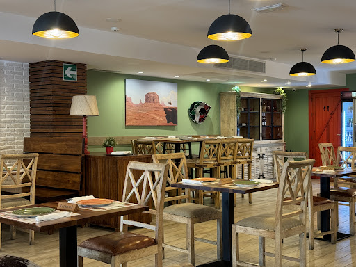 Read moreDesde que entras parece que no estas en Ceuta, algo diferente, con una decoración muy acojedora y metida en la tematica del reataurante, pero con mucho estilo. La atencion del personal es de destacar en todo momento, eramos dos personas y nos invitaton a sentarnos en una mesa mas pequeña, dejando reservada las otras para grupos mas grandes nos explicaron. Aceptamos encantados esa propuesta que entendimos perfectamente, porque es lo mas normal del mundo, que pintamos dos personas ocupando una mesa para 6, seria absurdo por nuestra parte y muy egoista. Cambiando de tem un poco, la carta refleja bastante bien lo que queremo pedir, y alguna duda de algun plato nos la resolvio amablemente una chica muy simpática, pedimos unas patatas tejanas, ñam ñam, incleible que buenas, se hace la boca agua muentras escribo y lo recuerdo, después compartimos una Hamburgueda Tex-Mex, sin duda la mejor que hemos probado en toda la ciudad, y nos atrevimos mi mujer y yo a pedir un plato mas para los 2, un costillar BBQ, al mas estilo Foster, pero mas sabrosa aun. No pudimos irnos sin tomarnos una suculenta tarta de dulce de leche. Y sinceramente, mi mujer no para de decirme que a ver cuando volvemos a por las Patatas tejanas y a seguir probando mas cosas, os ire...