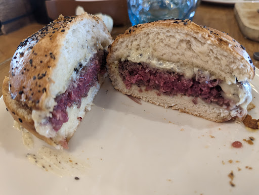 La hamburguesa de buey dudo que fuera de buey y encima estaba corta de sabor, a destacar que el punto de la carne era exactamente lo que pedí. Añadir que el bocadillo de lagarto sí me pareció que merecía la pena.
