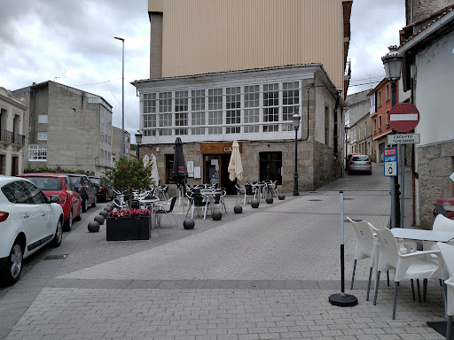Es una cafetería con una buena terraza fuera. Es bonito y limpio. Paramos a tomar un café y nos fuimos sorprendidos: una cerveza 0.0 tostada y un descafeinado de sobre nos costó 3.10€, lo más barato que hemos pagado, está es nuestra consumición habitual, desde hace mucho tiempo. Sin contar que nos pusieron un pequeño pincho de tortilla y unas aceitunas de tapa. En la carta vimos que todos los días tienen varias tostas, que solo por la descripción ya eran bastante...