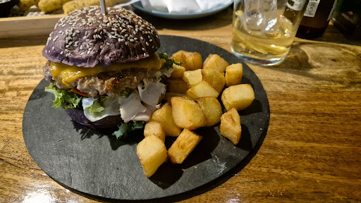Respecto a la carta sorprendente tanto en sus precios económicos como en su variedad, mereciendo especial consideración su Hamburguesa Guiness a la que en un primer momento me preste reticente a probar por su pan elaborado con carbon vegetal. Fue gracias a la profesionalidad de una de sus camareras, Sonia, quien no tuvo reparo en momento alguno a responder a todas las cuestiones planteadas sobre este alimento y su proceso casero de elaboración en este local, con una inusual simpatía y educación que a día de hoy se echa de menos en más de un negocio de hosteleria quien terminó de convencerme para degustarla. Exquisito ese toque que se consigue dar al pan gracias a esa harina de cristal que utilizan en su elaboración. Muy, muy recomendable y digna de repetir y recomendar a más de un amigo para que pase a visitaros por este local.