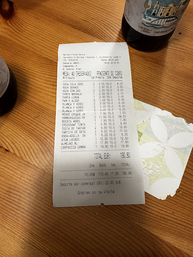 Finally on the bottom right corner of the menu it states that they charged extra for serving at the table. Yes, it is just a couple of Euros, but this is a seated restaurant. This is laughable and completely unusual in Spain. How about this: Increase quality of food and service and the prices along with it, if you have to, and forget about the couple of Euro for service a the table, when the place you run is a...