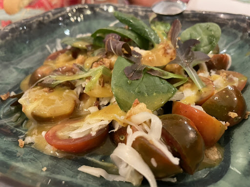 SIN EMBARGO, el enorme afán por servir más y más cubiertos deja la agradable experiencia de disfrutar de la cocina de Jose Luís en un "mal trago" ... ¿habéis ido a un restaurante "chino" donde te ponen toda la comida a la vez en la mesa?, pues os explico: llegamos a nuestra reserva puntuales (22:15 h) y salimos ya cenamos y cuenta pagada a las 22:57 h después de 7 platos para 4 personas ... todo venía a la vez, no dada tiempo de comerse los platos con tranquilidad y disfrutando, las cosas no cabían en la mesa, casi se caen algunos platos ... total, que lo que era una cena para disfrutar se convirtió en un agobio de comida y estrés por quitar platos de la mesa.