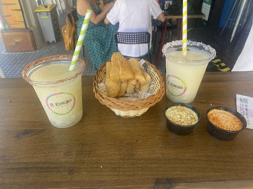 En cuanto a lo que probamos: --La yuca frita: una sorpresa para nosotros, un sabor muy particular y la salsita muy rica, sin duda un acierto --Las papas berracas: La salsa muy buena pero muy poco picante, aunque de sabor bastante rico en general y las papas bien hechas. --Los nachos cabromex: Bien, si te los esperas picantes por el nombre, no lo son. Estaban buenos. --Papas la Komuna: La carne muy buena y muy rico de sabor, el pico de gallo muy rico. --Arepa de secreto: sin duda buenísima, probamos la argentina también pero la de secreto estaba mejor. --Patakones, costeño y a la caribeña: El costeño riquísimo. El sabor muy rico y la base tenía un sabor...