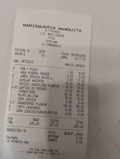 Respecto a la cantidad mínima para los precios cobrados, me reitero que hemos venido en multitud de ocasiones, hemos pedido medias raciones y siempre nos la han puesto, en esta ocasión no solo no nos la han puesto, sino que han puesto medias raciones al precio de ración completa, si se observan valoraciones de meses de mayo por ejemplo, las cantidades en medias raciones es la misma que nos han servido a nosotros. Respecto a la calidad, se puede observar que los daditos de corvina estaban mal fritos y requemados.