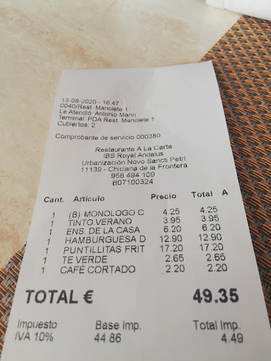 Read moreRestaurante ubicado dentro del hotel Iberostar Royal Al Andalus. Este año, al no montar el chiringuito en la playa como otros años, incorporan la carta del chiringuito a su menú. El sitio es muy muy agradable, aunque es una pena que solo den servicio de comidas. La comida es rica y el servicio es bueno aunque no rápido. No es un sitio barato, pero un poco en corcondancia...