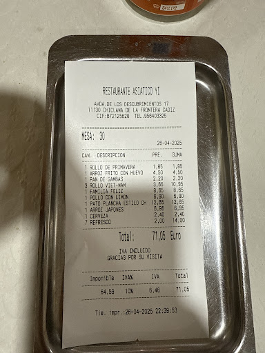 Read moreLlamo a las 23:30 de la noche para hacer un pedido me dise el precio y cuando me dice el precio pregunto es menu? Y me dice no platos unicos son 24 euros y dice mi pareja no vea si has pedido cosas k caro y me dice la china quiere comida o no quiere comida le digo si claro dejamelo ya total ya esta hecho me dice vale vale y cuando llego desde cadiz a chiclana a recojerlo a las 23:55 me encuentro con la sorpresa que no me habia hecho la comida porque mi pareja habia dicho que caro y le digo mira perdona pero si te e dicho que si que me lo dejara ya que habia echo el pedido y lo iva a pagar aunque fuera caro y me a dejado sin cenar las 12 la noche , ojala no le pase a nadie porque nos a dejado ami pareja y ami hija con 2 años sin cenar porque la hora que es ya no habia ningun restaurante chino abierto nos hemos tenido k ir al dominos de mas adelante corriendo a comprarnos una...