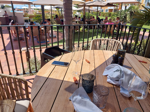 Read moreUn restaurante en un lugar idílico al lado de la piscina dentro de un hotel de 5 estrellas Gran Lujo. Almorzamos 3 personas: Ensaladilla, Fideuá (para 2) de pulpo y habas, un entrecot de vacuno (frisona) con patatas y salsa chimichurri; y de postre tarta de queso payoyo y una torrija al Pedro Ximénez. Todo estaba muy bueno, veo elevado de precio, el pan (3,50€ por persona) y las bebidas, pero dado el lujo del emplazamiento... De bebidas: agua, cerveza, tinto d verano y un vermú artesano d Chiclana (7€). El total d la cuenta los 3 = 148 €. Merece la pena una visita por el sitio tan agradable, la calidad y el servicio del amable personal, q fue impecable. Parking fuera, en verano más difícil. Dentro para los clientes del...