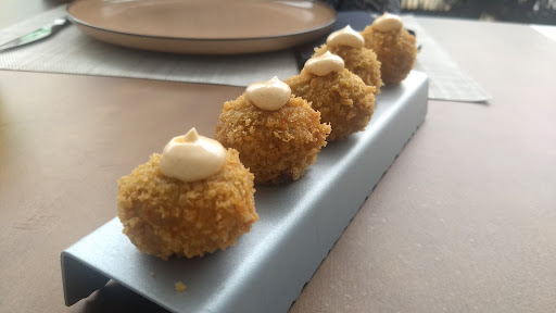 ¡Atención porque estamos ante uno de los mejores restaurantes de Chiclana! Nos sorprendió muy gratamente, tanto por la enorme calidad de todos sus platos como por su precio. Tanto fue así que en nuestra estancia de 4 días decidimos comer allí 2 veces. No podíamos irnos sin repetir. Enhorabuena a Pablo, el cocinero, por su buen hacer y su magníco toque en todos los platos; a Almudena, su mujer, y al personal, con mención especial para Juanma, que hace cada comida cordial y agradable, como si estuvieras en tu casa. Vamos con nuestra visión de los platos. Para abrir boca empezamos con unas croquetas de lomo en manteca. Nos dejaron hojipláticos: cremosas, el rebozado de panko perfecto, gran cantidad de lomo y con un sabor delicioso. Continuamos con un canelón de pollo con foie que es simplemente inmejorable y señalaría como uno de los platos que hay que probar sí o sí. A continuación unas alcachofas al carbón con gambas, muy ricas con ese toque de carbón, pero mejorables si se les eliminaran algunas partes demasiado duras. Como plato principal tomamos un solomillo de ternera al carbón que estaba exquisito: tierno, jugoso, hecho en su punto (incluso un poco menos habría sido todavía mejor) y nuevamente ese toque ahumado del carbón que lo redondea. Terminamos con una tarta de queso, de las que somos fanáticos, y como no podía ser menos estaba elaborada con payoyo. Las hemos probado de todo tipo y sabores, tanto por España como fuera, y podemos decir que estaba en el top 3. Bebimos cerveza, una botella de un blanco de la zona y una copa de Pedro Ximénez. Y la cuenta salió por ¡tan solo 40€ por persona! ¡Espectacular! Después de varios años visitando la zona podemos decir sin temor a equivocarnos que es de largo la mejor relación calidad-precio que hemos pagado. Ahora se entenderá por qué decidimos volver un segundo día, donde probamos la ensaladilla rusa (para mi gusto lo más flojo de todo), un bacalao con sus callos (delicioso), una brioche con panceta y atún (excelente) y un pollo picantón (magnífico), y de postre otra tarta de queso y una torrija de brioche con crema catalana y natillas (alucinante). Después de estas dos experiencias, para nosotros se ha convertido en un sitio de referencia en Chiclana. Así que allí nos...