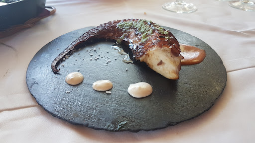 Read moreUna gran decepción. Hemos visitado este restaurante en varias ocasiones en veranos diferentes desde el año 2013 y es una pena porque cada vez va a peor. Los precios son elevados porque la materia prima es de calidad y el local elegante y con clase. El caso es que, en la última ocasión que hemos estado, la presentación y el cocinado de las carnes no nos agradó nada: unas láminas finas, frías y secas de lo que se suponía que era un secreto ibérico, tiradas en mitad de un plato enorme con cuatro patatas fritas. La cantidad servida no se corresponde con el precio de la carta: escaso y mal cocinado es un halago. Lo mismo para un entrecot de vaca vieja, que estaba simplemente correcto y acompañado de las mismas cuatro patatas fritas frías y tiradas a su lado en el plato. Ni presentación, ni presencia, ni sabor especialmente buenos. Esto a día de hoy, 17 de julio de 2017. En años anteriores probamos arroces y mariscos reguleros, ensalada templada de pimientos nada recomendable, lo mismo que la parrillada y un etc de despropósitos por los que no volveremos más, a pesar de ser un sitio que nos gustaba mucho hace años. El servicio es terrible, por cierto: lentísimo para ser la única mesa en toda la sala a las 8 y media de la tarde. No lo...