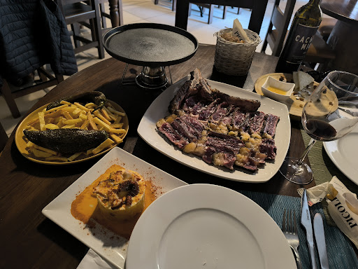 Luego de platos un tuétano y un entrecot de vaca rubia gallega. El tuétano espectacular, no es muy común verlo en cartas y en este sitio a parte de hacerlo muy rico se nota que es gran producto porque tenía una sabor intenso y sabroso. El entrecot que decir, de lomo alto y te ponen una piedra caliente para darle el punto que más te guste, se nota que tienen una carne de calidad. La próxima será el chuletón jaja. 10/10 El servicio muy bueno, muy amables y los platos llegaban a su tiempo, cierto es que había poca gente pero seguramente que estando el sitio hasta arriba sería igual de perfecto. Postres no pedí.