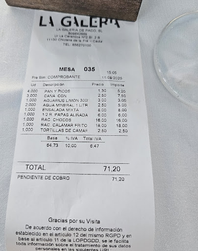 Tras un rato esperando la cuenta, a la tercera llegó por fin la cuenta sin las gambas al ajillo incluidas en el precio.