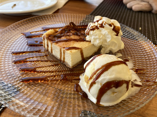 De postre, pedimos : tarta de queso con una capa por encima de leche condensada, y un yogur con galleta y Mango. He de decir, que estaban buenos, pero me quedo con la comida .