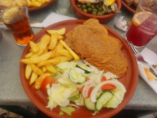 Read moreEl Bar se encuentra en plena Plaza, comimos Cachopo, nunca lo había probado, es como un Cordon Blue . Es una doble milanesa empanizada y en el medio está relleno con Jamón Crudo, Queso y pimentón, muy rico. Entiendo que es de asturias este plato. Igual pedimos un Entrecot con papas, un Chuleton tamaño normal (que no tiene nada que ver con las dimensiones del Chuleton extra-grande de AVILA) y un Filete de ternera con patatas y huevo. Todo muy rico. De entrada habíamos pedido unos boquerones , que estaban rebuenos. La atención muy buena. No doy las 5 estrellas, ya que les falto el postre, ya que solo tenían 1 solo que era de chocolate. Caso que hubieren tenido más variedad les habría dado las 5 estrellas. Pero...