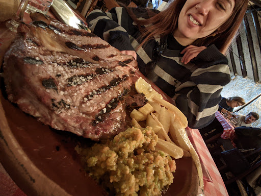 Read moreBuen descubrimiento cerca del centro de Chinchón. Llamamos 20 minutos antes para reservar y al llegar teníamos la mesa puesta perfecta para nosotros. Es un local acogedor y con solera, aunque no le vendria mal repasar los detalles (limpieza de decoración, etc) nada que reseñar de la limpieza en general porque todo genial en ese aspecto. La atención del personal de sala muy rapida, efectiva y agradable, controlan todo lo que tienen y se agradece. Pedimos carta y en temporada fria la sopa castellana y consome son obligados y se convierten en recomendación por sabor y precio. Los huevos con chorizo bien, el chorizo a la brasa funciona pero la presentación deja que desear, se agradecería no tener que abrirlo y cortarlo. El entrecote llegó clavado de punto y con un acompañamiento en el que las patatas podrían haber tenido algún crujiente más allá del pochado básico y el picado de verdura le venía bien pero no era nada especial, por el precio que tiene (20€) justo lo que promete, pero quizás tendríamos que haber tirado al solomillo por 4€ más. Cerramos con un postre de tarta de queso casera que sabía a horno de leña y que mejoraría templada o incluso con un punto de calor, el coulis de arandanos que lo bañaba era lo que daba el broche para redondearlo. En conclusión, disfrutable y por el precio (57'50€ dos personas, café, copa de vino y pan incluido, tienen menú de finde por 26€/pax) es un sitio al que venir, quizás no obligatorio comer/cenar pero mínimo a probar el consomé y la sopa castellana. Si no sabéis dónde ir es una opción con buena relación calidad-precio, destacamos lo...