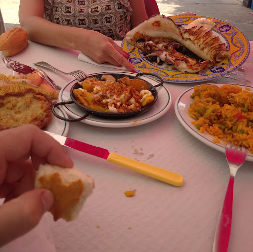 Read moreNo entiendo los buenos comentarios del lugar, es una auténtica vergüenza lo de este sitio. Lo único bueno es la localización, pero te amargan la experiencia. Recomiendo en todo caso ir solo a tomar algo de refresco, o llevar en el bolso o un bocadillo o la nómina preparada. Es un auténtico abuso cómo pueden cobrar 10 euros por 6 gyozas, que ni se sabe de qué son porque no saben a nada. Y así con todo. Las croquetas de gambas y tinta de calamar solo tienen el color, porque no saben absolutamente a nada, encima de que llegaron requemadas. Y del cachopo sí que es necesario prescindir, ya que por cada cachopo que se pide le da algo al asturiano que viera eso. 18 euros por un filetito ridículo empanado, que nos pareció una broma. Eso sí, bien de patatas congeladas y sin sal para aparentar. Lo del servicio de este bar ya merece mención especial, porque no solo están faltos de profesionalidad sino de educación. Los camaremos literalmente te meten las manos por medio de la mesa desde el otro extremo de la misma, y todo para intentar llevarse platos que aún tienen comida. Todo mientras estás masticando, y tienes que tragar rápido para decirles que lo dejen, porque no has acabado. Es que ni preguntan. Encima de caro, estresante y sin calidad. No volveremos, no lo recomiendo, y ojalá hubiera visto el percal antes de sentarnos....