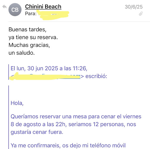 Me gusta pasear por la playa y terminar la tarde en Chinini con un refrescante mojito o una cerveza bien tirada. Tiene una buena carta de cócteles. Por las tardes la música es un poco más tecno, en la cena, chill-out y más tarde, discotequeo. Acompaña sin estorbar. Deliciosa.