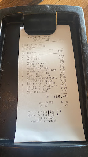 No puedo opinar sobre su comida, ya que ni he comido ni cenado allí. Aunque me fío de las opiniones de mi gran amigo José G. Además, está siempre lleno por las noches para cenar, por lo que intuyo que debe estar bien. Suelo acudir al atardecer, justo cuando se va a esconder el sol. Ver la puesta de sol desde el Chinini es todo un espectáculo. La playa luce preciosa y ofrece un paisaje maravilloso.