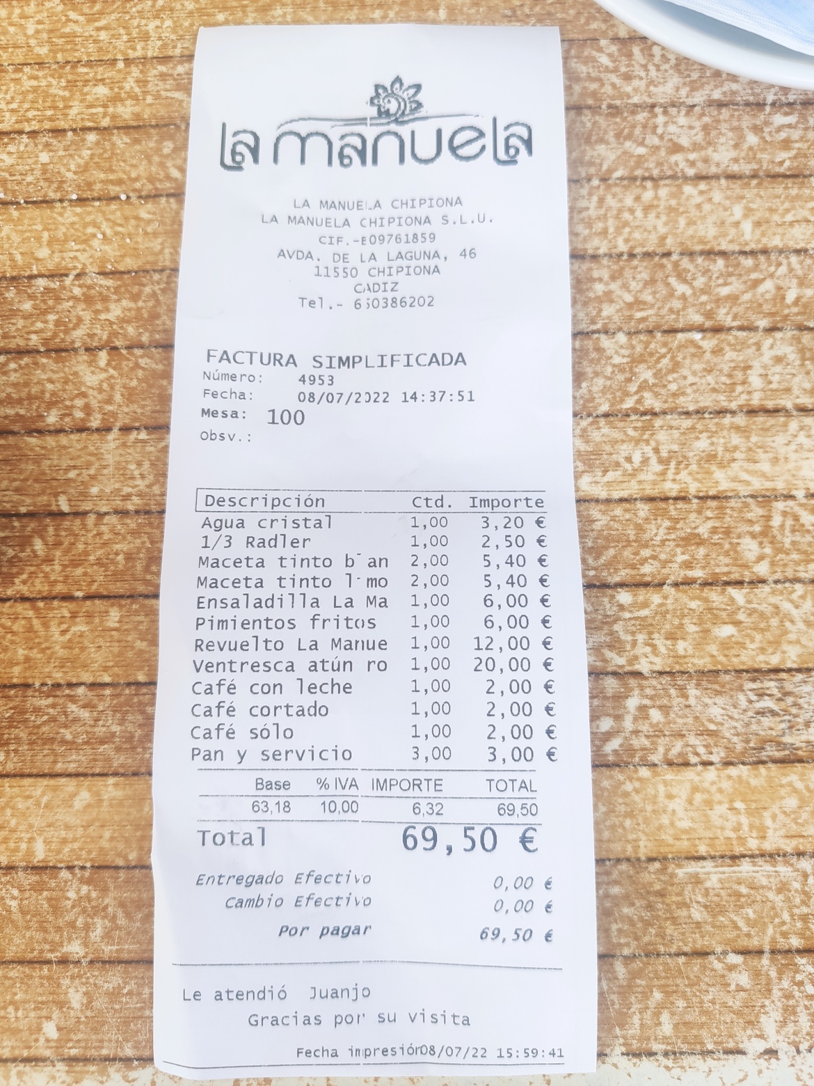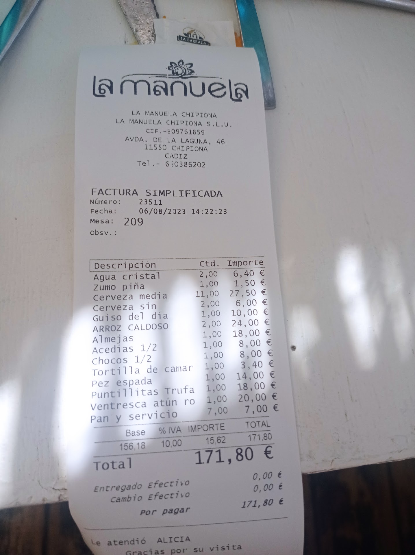 Y nada, aquí estoy tomando el sol en la mesa esperando a que nos traigan la cuenta… cojo un par de tonitos seguro…