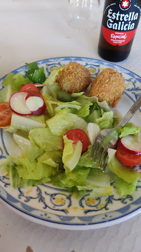 Read moreHay que reservar con tiempo porque se llena muchísimo! Largas mesas con familias y reuniones! Parece por fuera pequeño pero es inmenso. La atención rápida! Los platos son grandes y con porciones bien resueltas. Variedad de opciones. De entrante los champiñones rellenos con foie estaban muy buenos, vienen con una salsa blanca que quizás le añadiría un poco más de sal, pero ya es cuestión de gustos. La ensalada de cabra estaba bien, sirven el queso rebozado y está genial, ya que le da un toque crujiente. De segundo El entrecot estaba muy bueno, un buen trozo, finito pero grande. La sepia muy buena y grandísima. No recomiendo pedir entrantes a parte porque el menú es suficiente. Lo negativo es que hubo momentos que tuvimos que repetir los pedidos, ya que había mucha gente y faltaban platos y además había que pedirlos con rapidez porque se iban acabando las opciones. De resto todo se resolvió con rapidez y eficiencia. El sitio me ha...